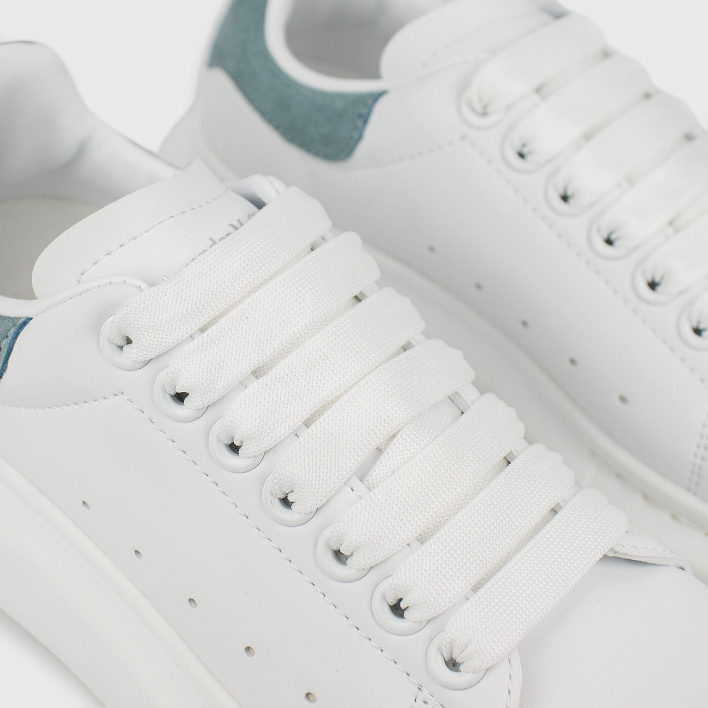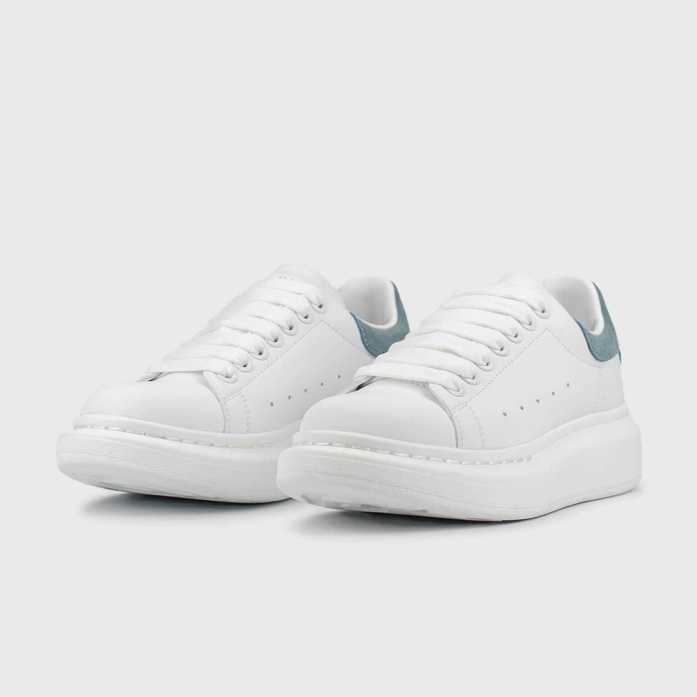 Кроссовки на шнуровке из иск. кожи с закруглённым носком и замшевой накладкой на заднике. Широкие плоские шнурки. На заднике и язычке: логотип Alexander McQueen. Выступающая резиновая подошва. Материал: иск. кожа,замша,текстиль, резина Сезон: демисезон
