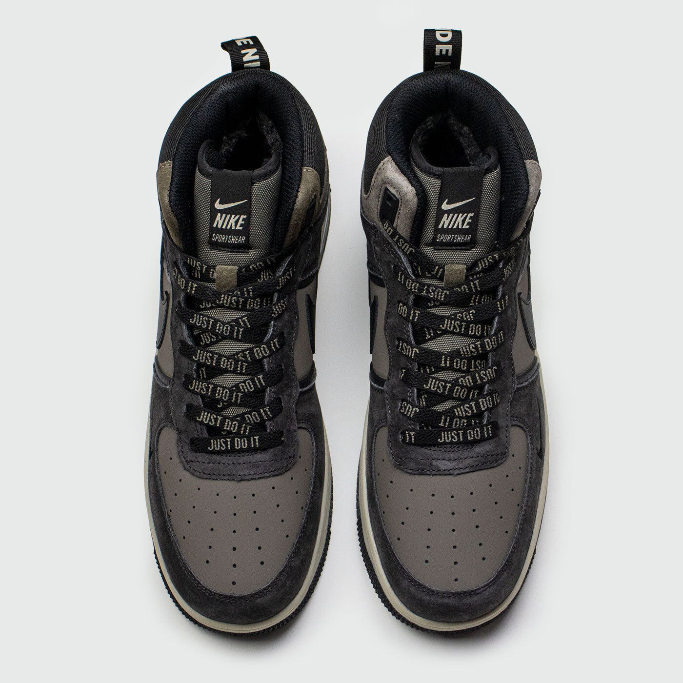 Кроссовки Nike Air Force 1 Mid Grey / Black with Fur