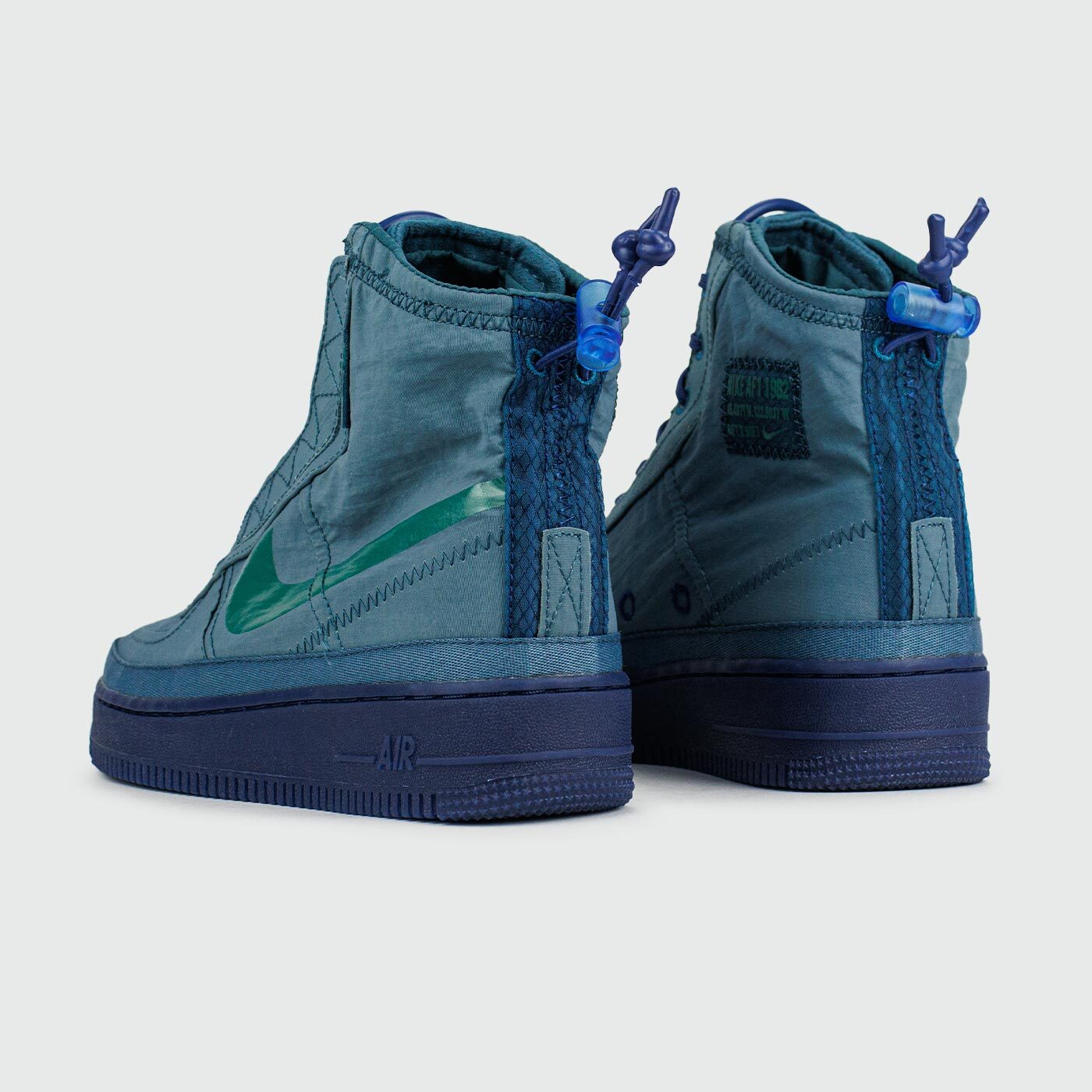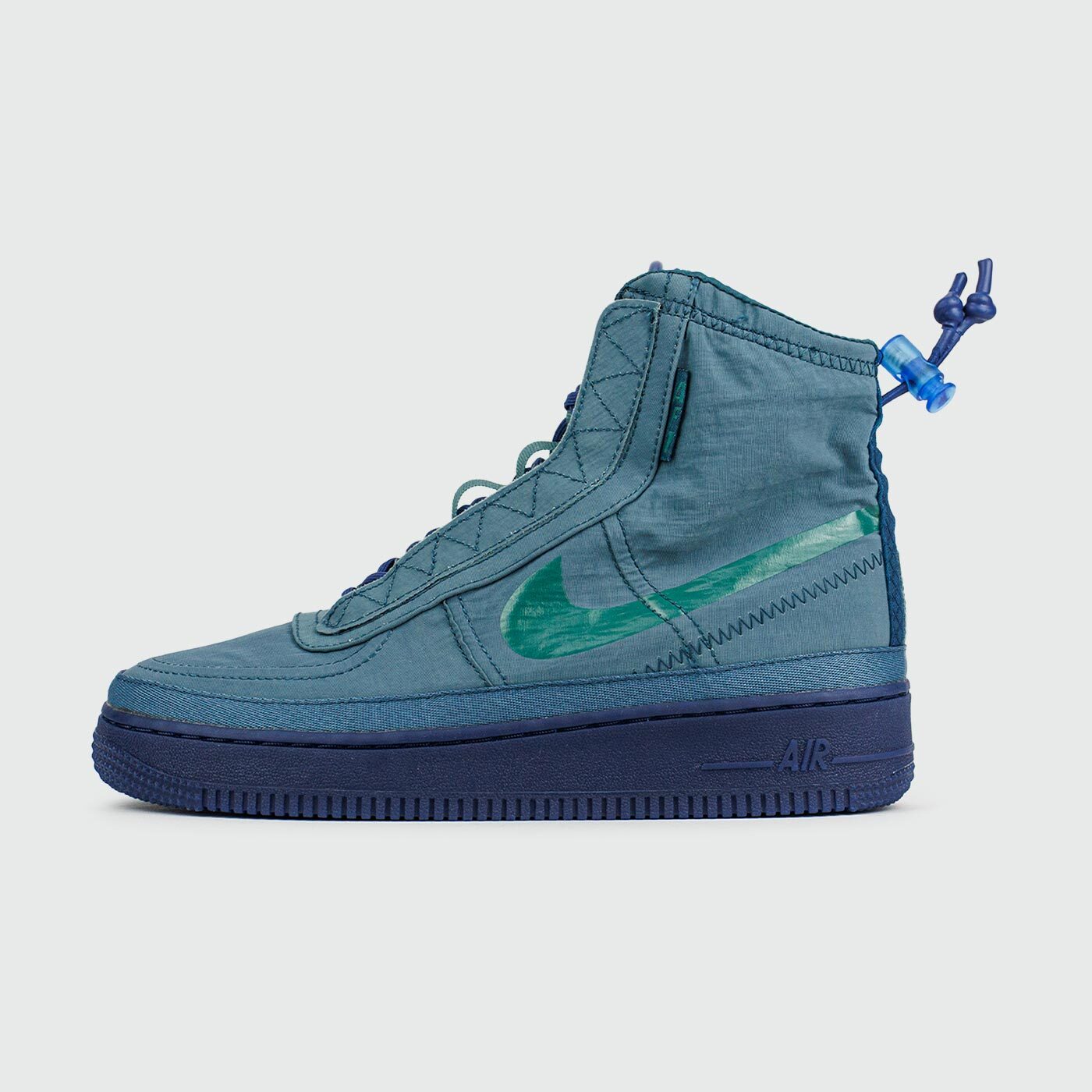Кроссовки Nike Air Force 1 Shell, вдохновленные сезонной верхней одеждой, выполнены с водоотталкивающим верхом и регулируемым бортиком для защиты от влаги в непогоду.