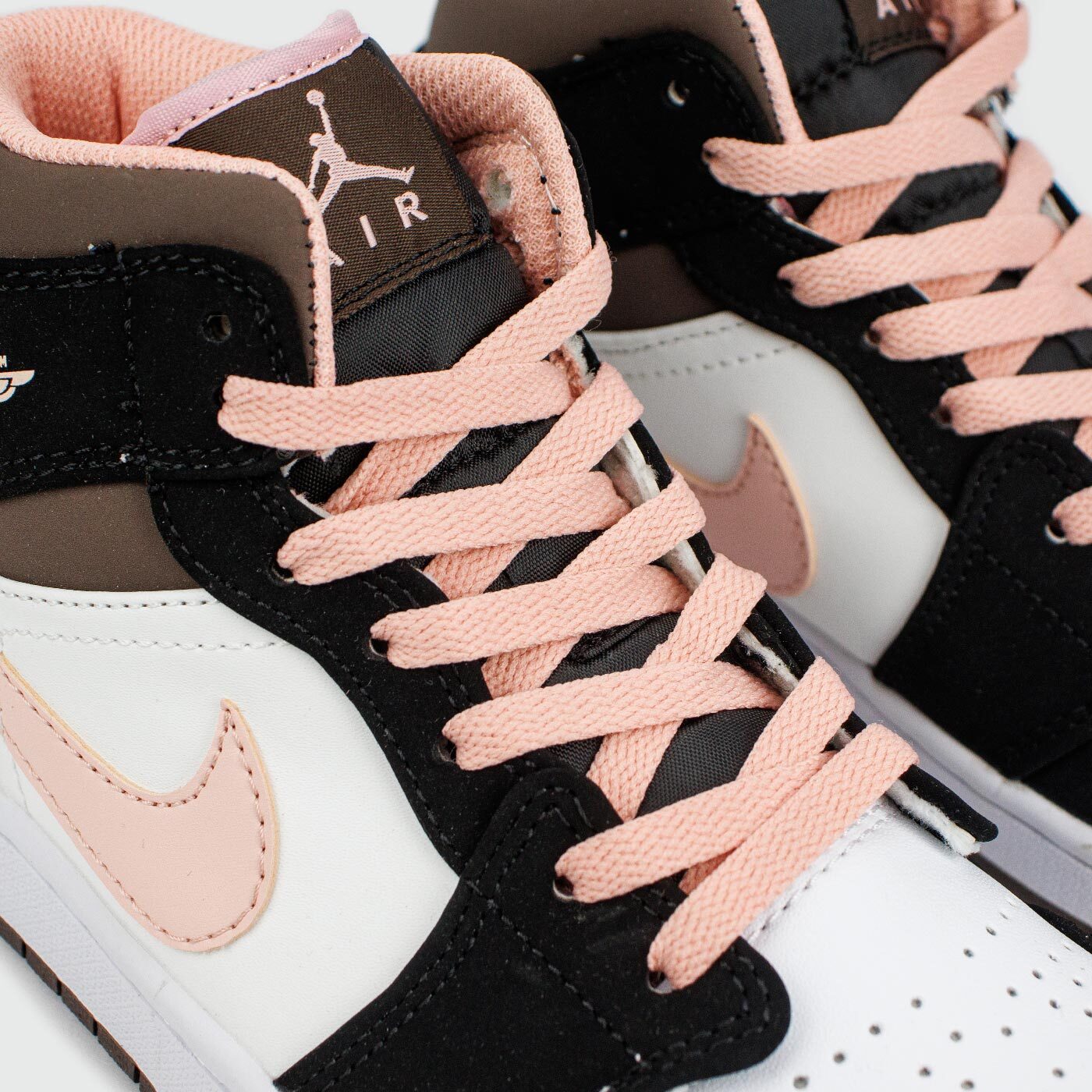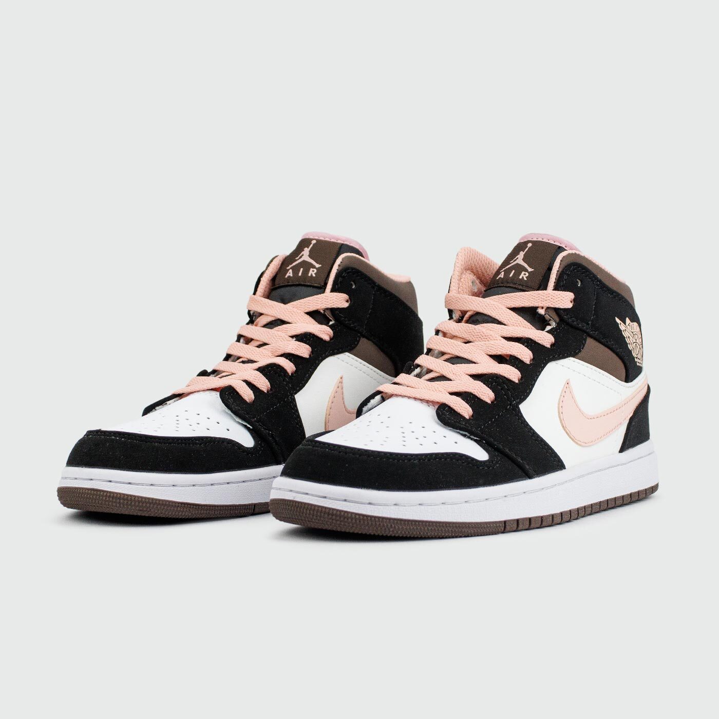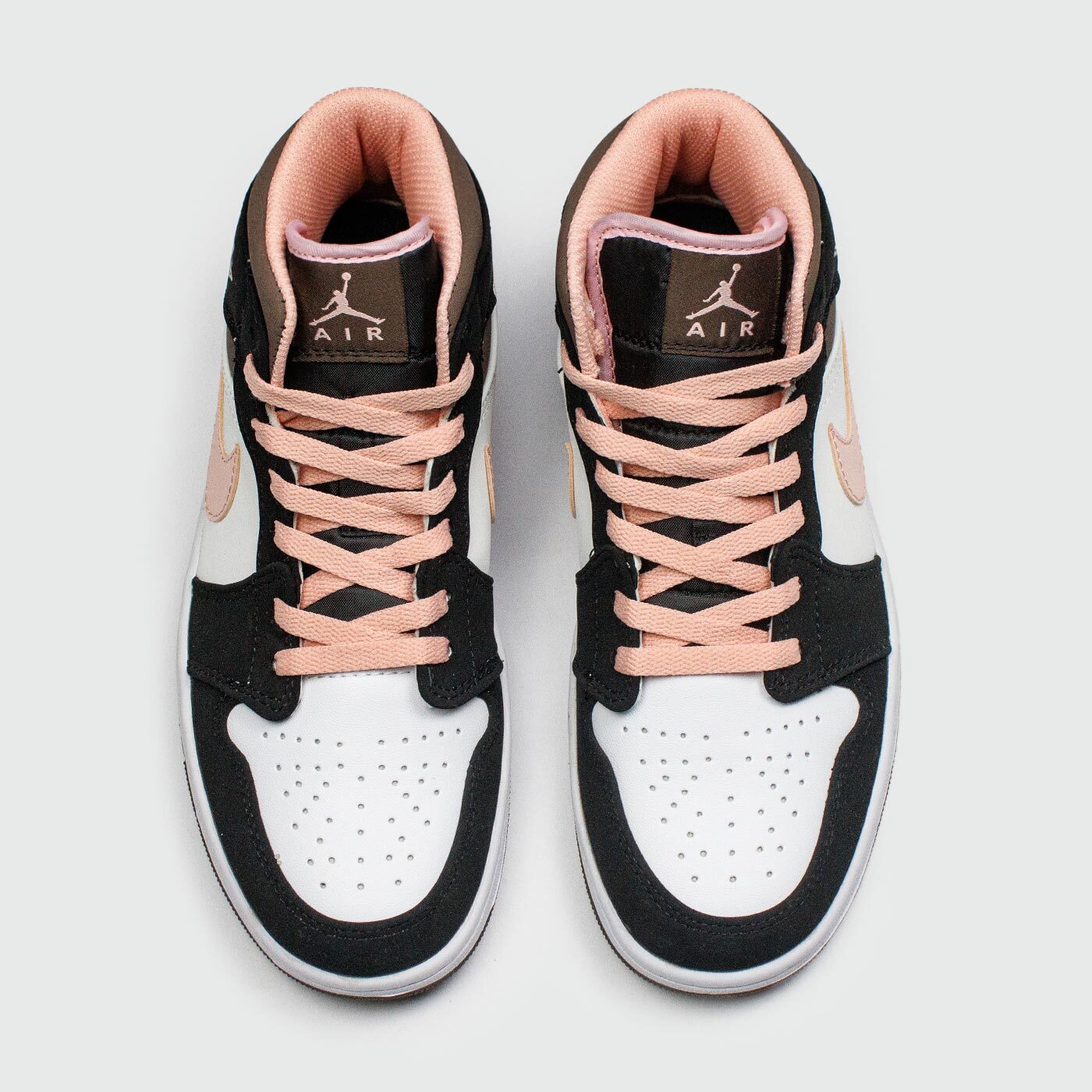 Air Jordan 1 Mid "Peach Mocha" - это новая расцветка популярных кроссовок от Майкла Джордана, которая идеально подойдёт для вечерних прогулок по цветущим улицам. Jordan 1 Mid дебютировали в 2007 году в рамках коллекции "New/Old Love", и с тех пор модель в версии Mid стала наиболее популярной. Детали из искусственного чёрного нубука контрастируют с основой из белой иск.кожи. В нежном персиковом оттенке выполнены свуши, шнурки, подкладка, а также классическая эмблема "Wings" на щиколотке. Верхняя часть кроссовок изготовлена в темно-коричневом оттенке, а завершает дизайн белый логотип "Jumpman" на нейлоновом язычке.